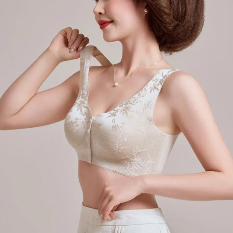 🎁Ganztägiger Komfort-BH aus Spitze mit breiten Trägern und Knöpfen vorne