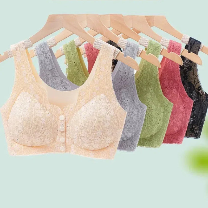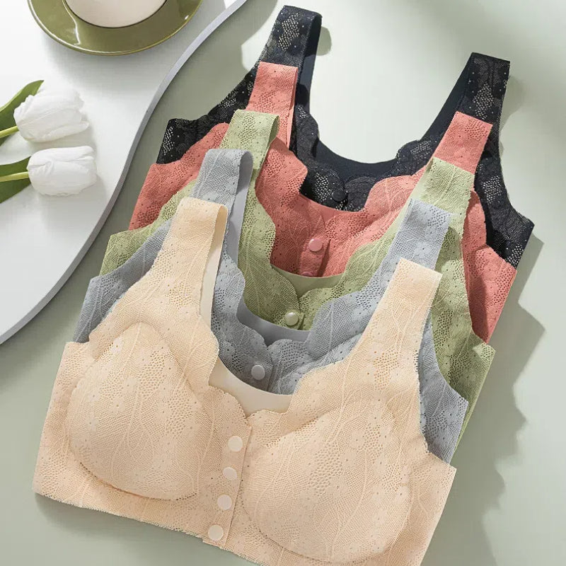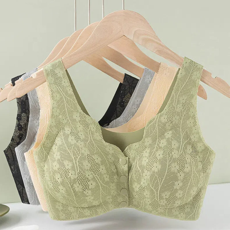 🎁Ganztägiger Komfort-BH aus Spitze mit breiten Trägern und Knöpfen vorne